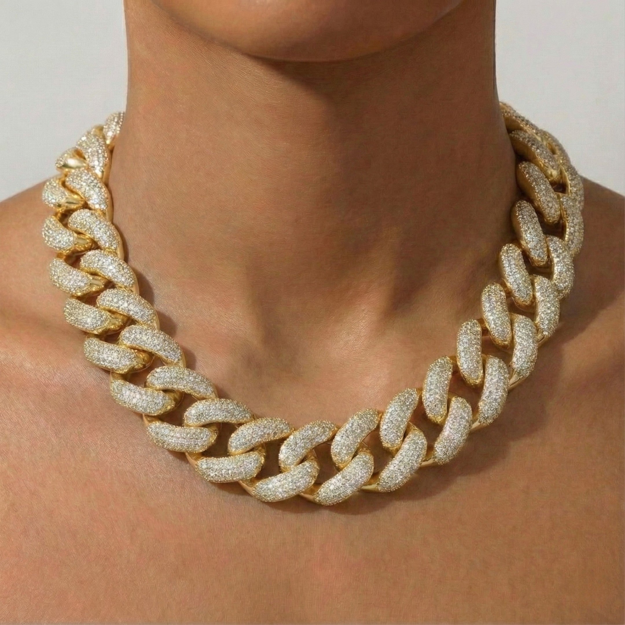 The Kute Queen Necklace glows with extra stones and prong-set brilliance , a bold link made to crown your look.