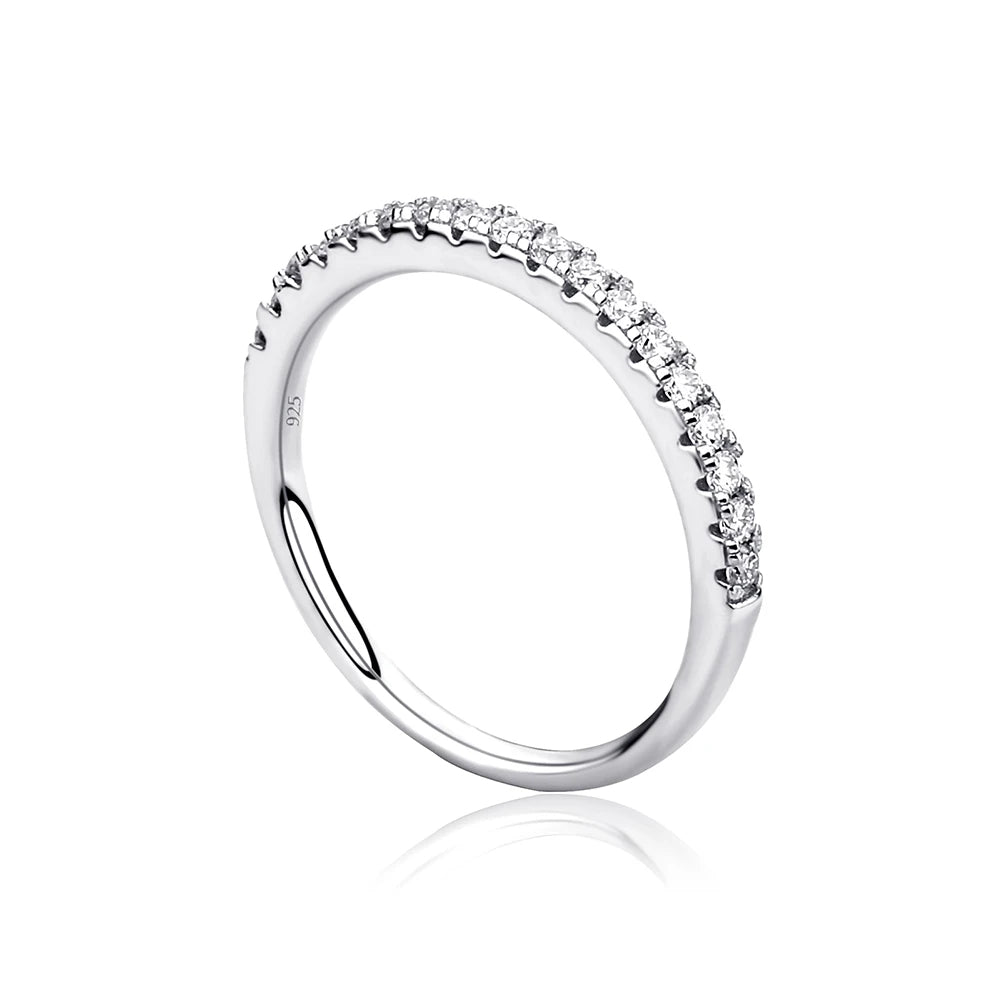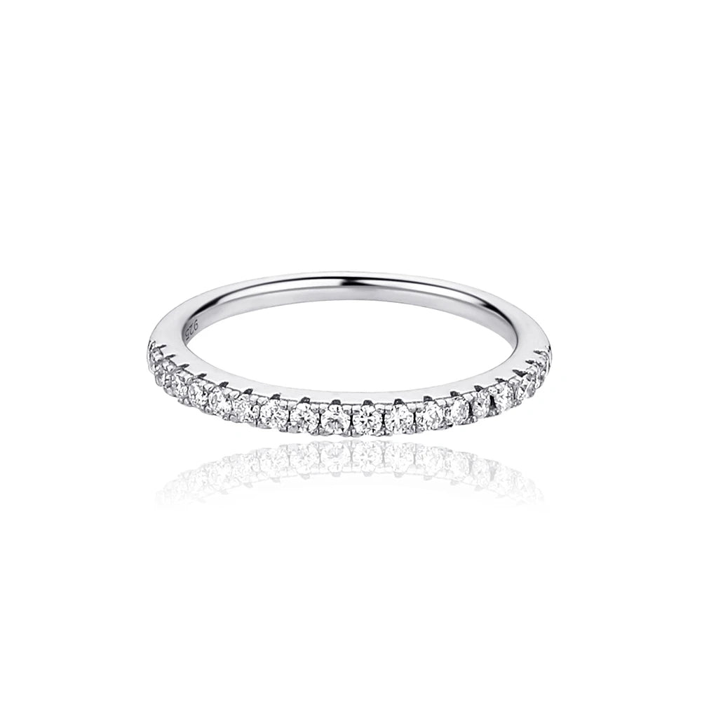 Crafted in 925 sterling silver and iced with a GRA-certified D color VVS1 moissanite, this eternity ring radiates unmatched brilliance and clarity.