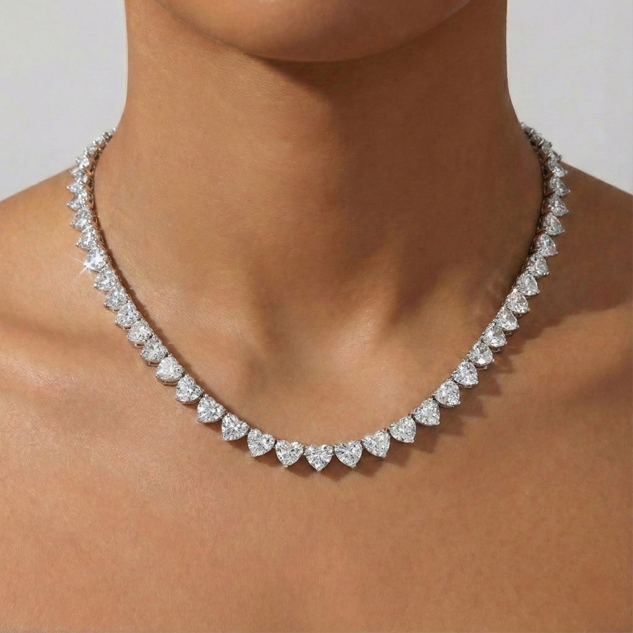 This 6mm tennis necklace features heart-cut stones that glow with every move , the ultimate soft glam statement.