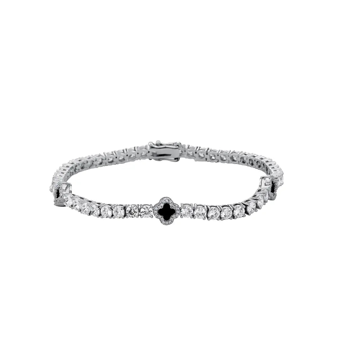 This 4mm bracelet blends timeless tennis shine with bold clover accents , subtle, but unforgettable.