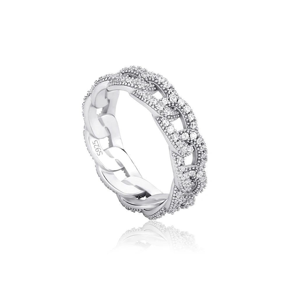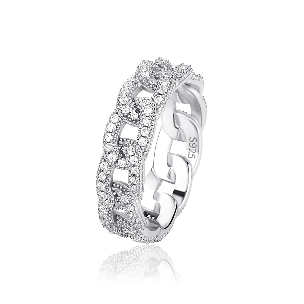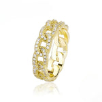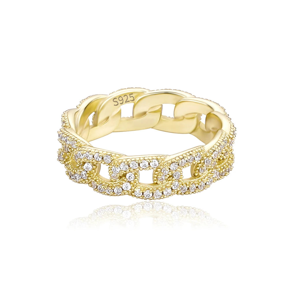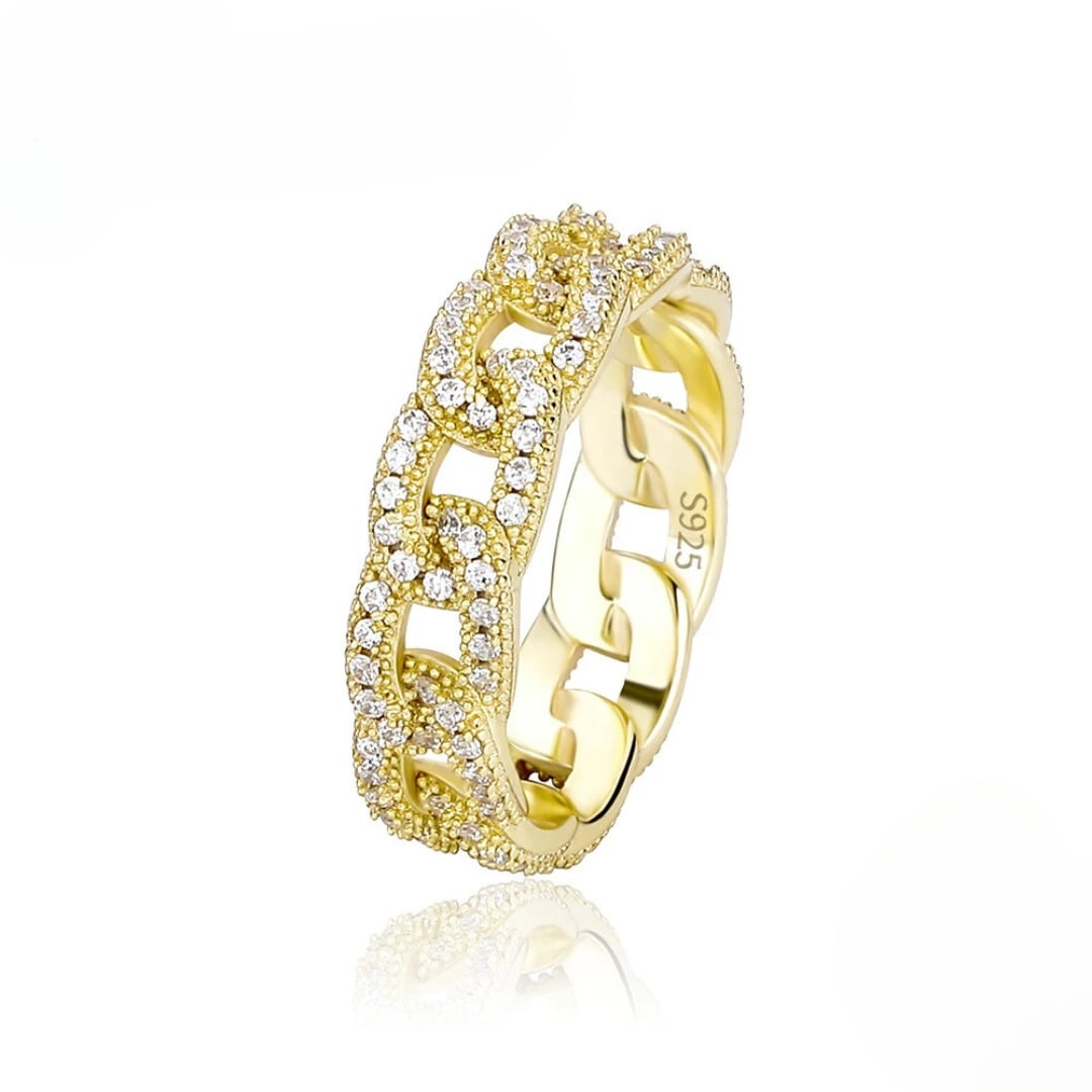 Crafted in solid 925 sterling silver and finished in 18k gold, this iced-out ring brings timeless shine with everyday confidence.