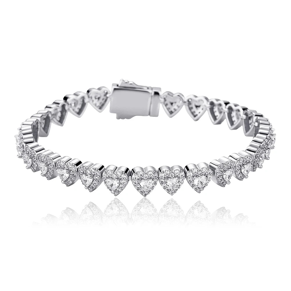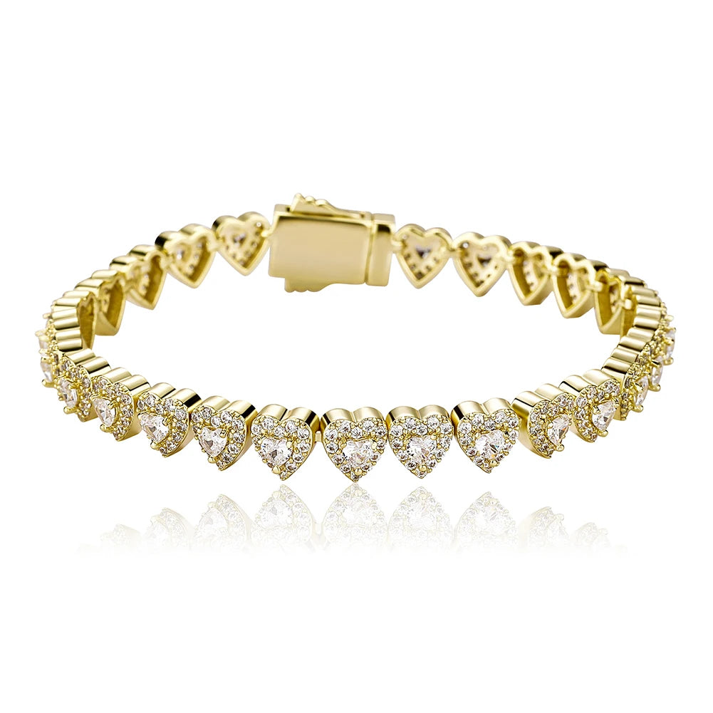 This 7mm bracelet features pavé-set hearts linked in gold , a perfect mix of soft girl energy and bold luxury.