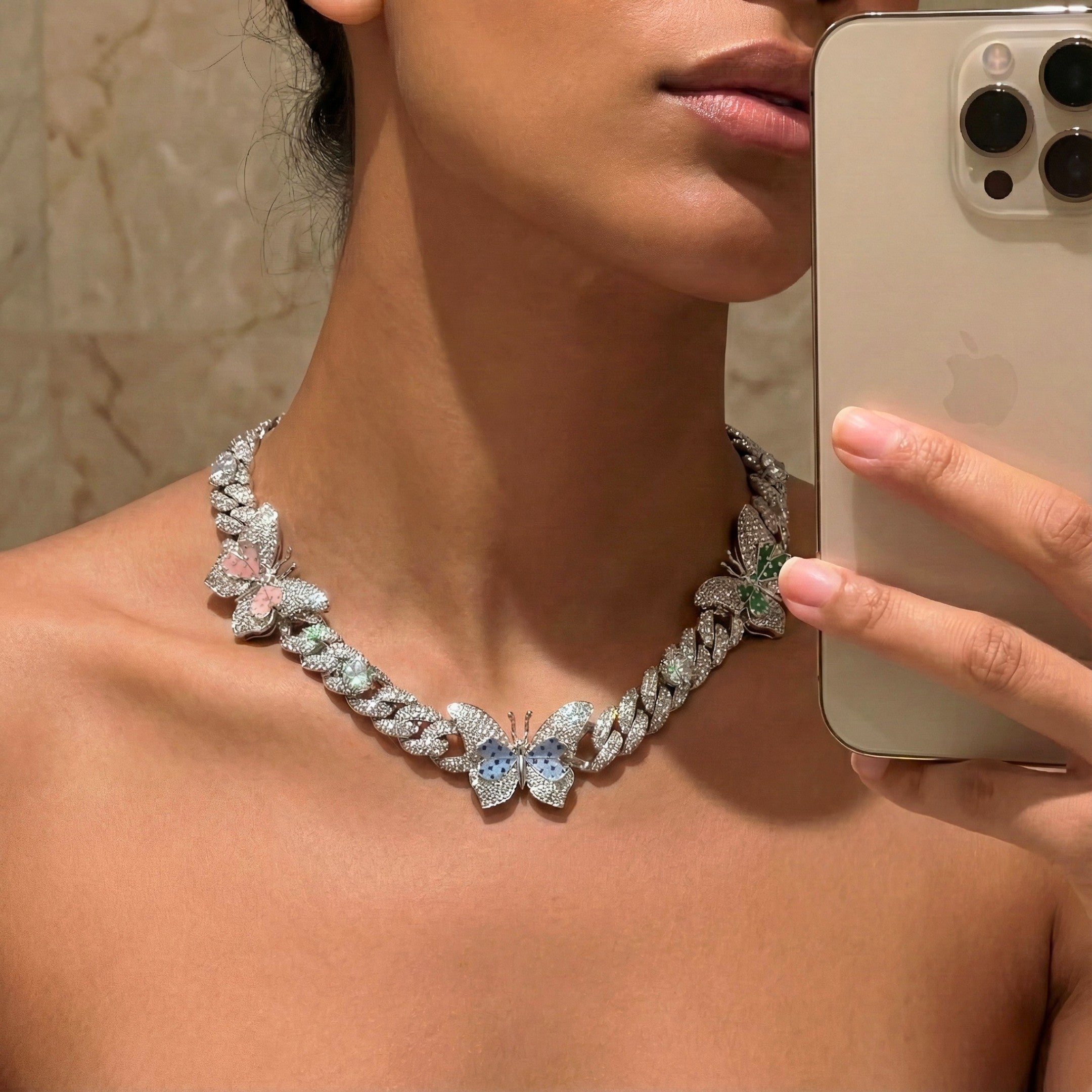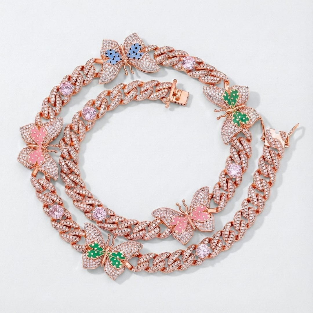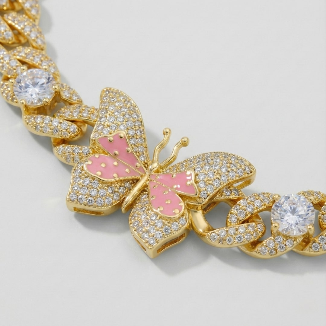 A bold 10mm iced link wrapped in delicate butterfly charms, soft, sparkly, and instantly expensive-looking. The perfect pretty-flex: heavy enough to feel premium, feminine enough to elevate every outfit, and guaranteed to spark the “Where did you get that?” moment.
