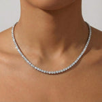 This tennis necklace shines in 3mm width, perfect solo or layered for effortless glam.
